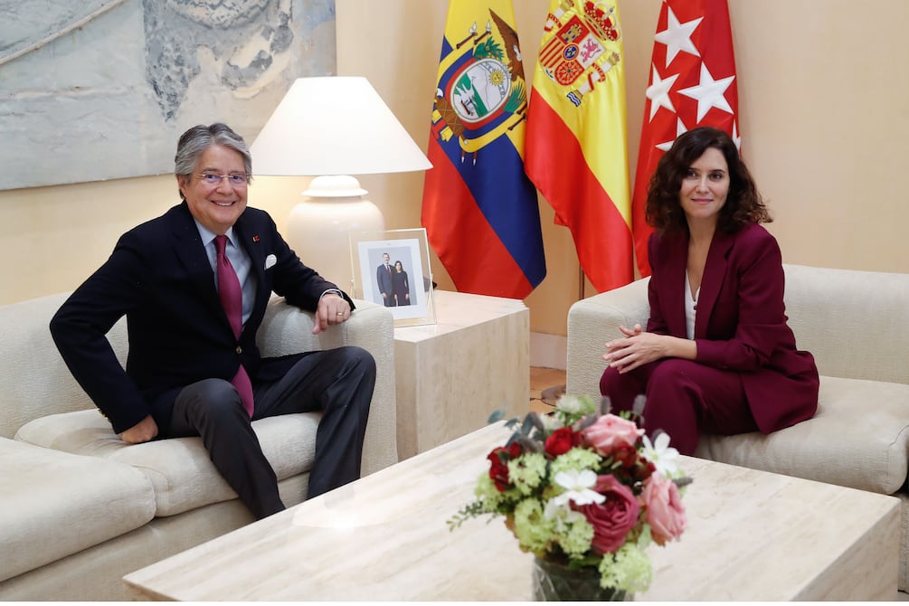 En su primer día de agenda oficial en Europa, el viernes 14 de julio el presidente Guillermo Lasso se reunió con José Luis Martínez-Almeida, alcalde de Madrid, y, posteriormente, con la presidenta de la Comunidad de Madrid, Isabel Díaz Ayuso. Los diálogos con las dos autoridades giró en torno a temas de cooperación entre Ecuador y España, defensa de la democracia e institucionalidad.