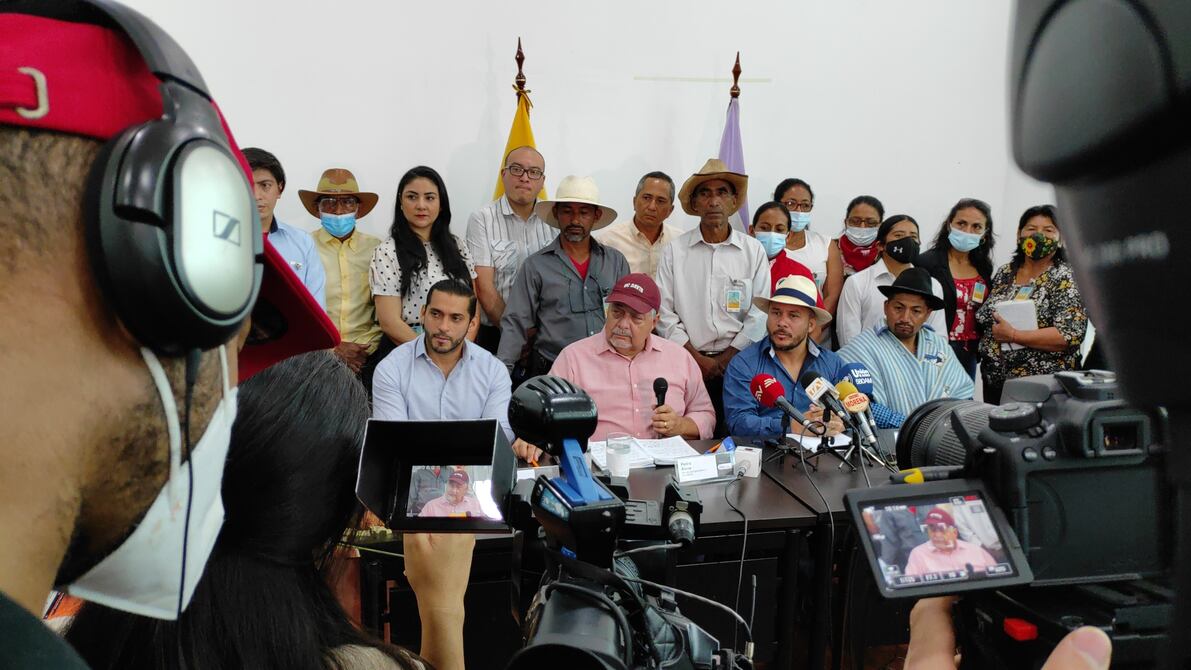 El ministro de Agricultura, Pedro Álava, y el dirigente campesino, Richard Intriago, en rueda de prensa aseguraron que llegaron a varios acuerdos en conjunto.