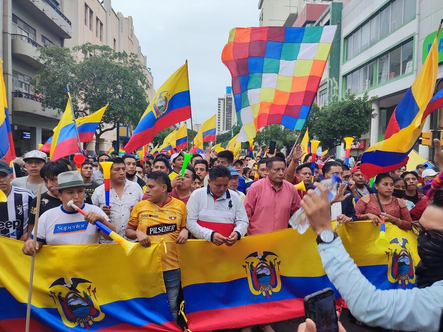 Diferentes organizaciones sociales, la Unión Nacional de Educadores (UNE) y grupos indígenas de la costa volvieron a darse cita la tarde de este martes 21 de junio en el centro de Guayaquil para respaldar el paro nacional de la Confederación de Nacionalidades Indígenas del Ecuador, que cumple su noveno día.