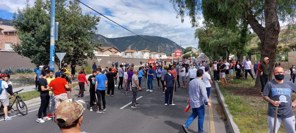 “Ahorita volvió a sonar la alarma para que salgamos con palos para defendernos”, es el mensaje de una moradora de un conjunto residencial ubicado en la vía a la Mitad del Mundo, cerca de Maresa, en Quito, que fue enviado a la redacción de EL UNIVERSO. Afirma que “manifestantes” quieren ingresar a la fuerza a sus viviendas.