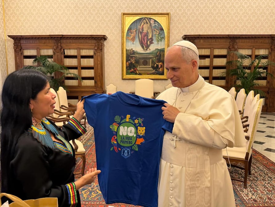La lideresa quichua Patricia Gualinga, reconocida defensora de los derechos de los pueblos indígenas y del medioambiente, mantuvo una audiencia privada con el papa León XIV en el Vaticano junto con otras activistas indígenas, el pasado 29 de octubre.