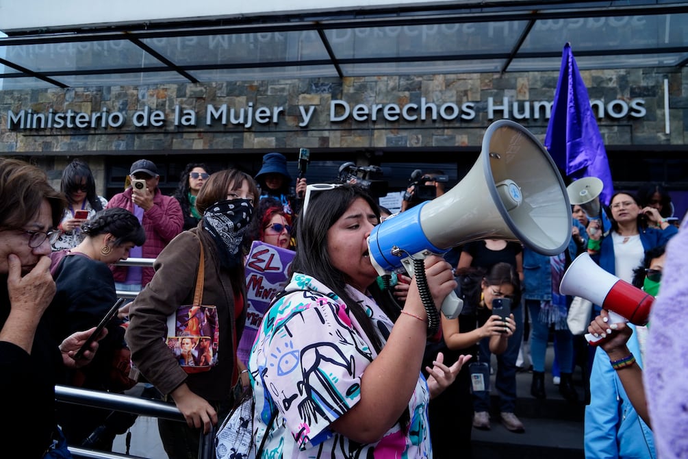 La tarde de este lunes, 28 de julio de 2025, organizaciones de mujeres realizaron un plantón en los exteriores del Ministerio de la Mujer, en el centro-norte de Quito, para rechazar la fusión del Ministerio de la Mujer y Derechos Humanos con el Ministerio de Gobierno.