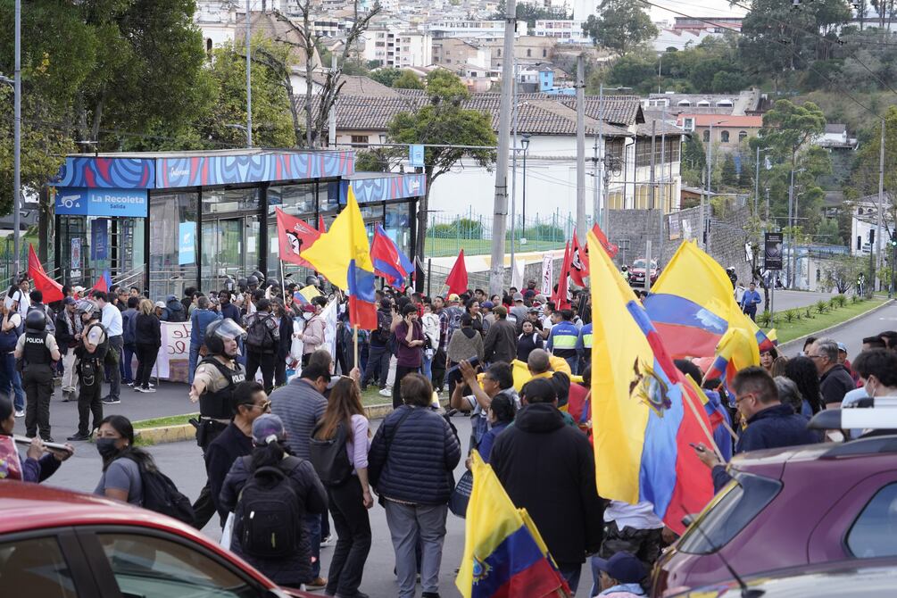 El Ministerio de Defensa, ubicado en el centro histórico de Quito, fue el escenario de un plantón y contraplantón a favor y en contra del paro nacional, que este jueves, 2 de octubre de 2025, cumple su undécimo día.