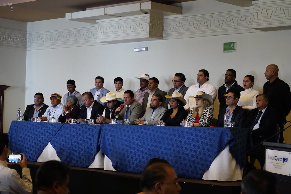 Dirigentes gremiales del transporte nacional, acompañados de miembros de colectivos sociales, se proclamaron como parte de una ‘plataforma nacional por la patria’ y se declararon en ‘vigilia permanente’ para observar la tramitación del enjuiciamiento político al presidente del Gobierno, Guillermo Lasso, que se desarrolla en la Asamblea Nacional.