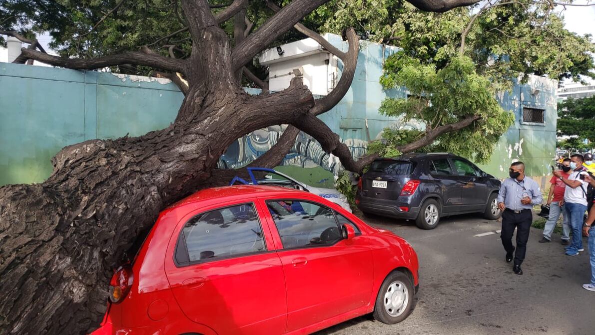 Tres vehículos que esperaban el cambio de luz del semáforo resultaron afectados tras la caída de un árbol gigante en la intersección de las avenidas Isidro Ayora y de las Américas, en el norte de Guayaquil.