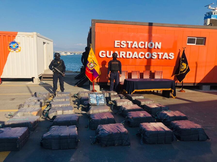 Cristian Fiallos, comandante del Subcomando de Guardacostas en Manta, informó que la droga estaba camuflada en 60 bultos transportados en dos lanchas.
