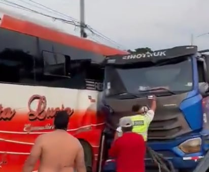 Un bus de la cooperativa Santa Lucía y un tráiler que transportaba varillas se impactaron de manera frontal. Ocurrió alrededor de las 05:00.