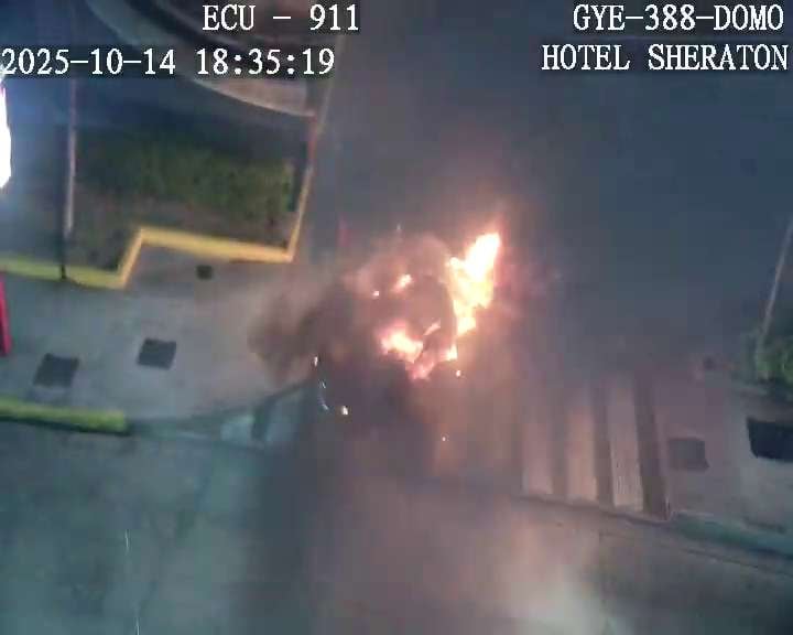 La camioneta que explotó en el sector de la avenida Joaquín Orrantia, cerca del hotel Sheraton, tenía placas de Tungurahua.