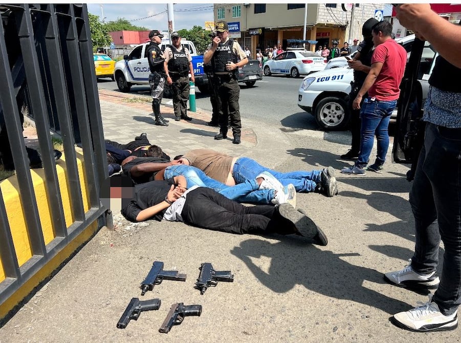 La Policía aprehendió la tarde de este martes a seis presuntos integrantes del grupo delictivo Los Lobos en un operativo realizado en los exteriores de un centro comercial de Manta, provincia de Manabí.