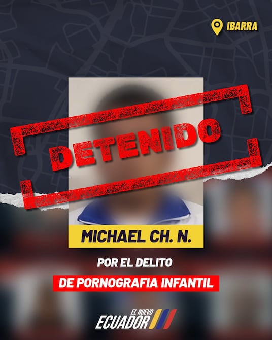 El Ministerio del Interior anunció la captura de un hombre que era requerido por la justicia por el presunto delito de pornografía con utilización de niñas, niños o adolescentes en Ibarra.