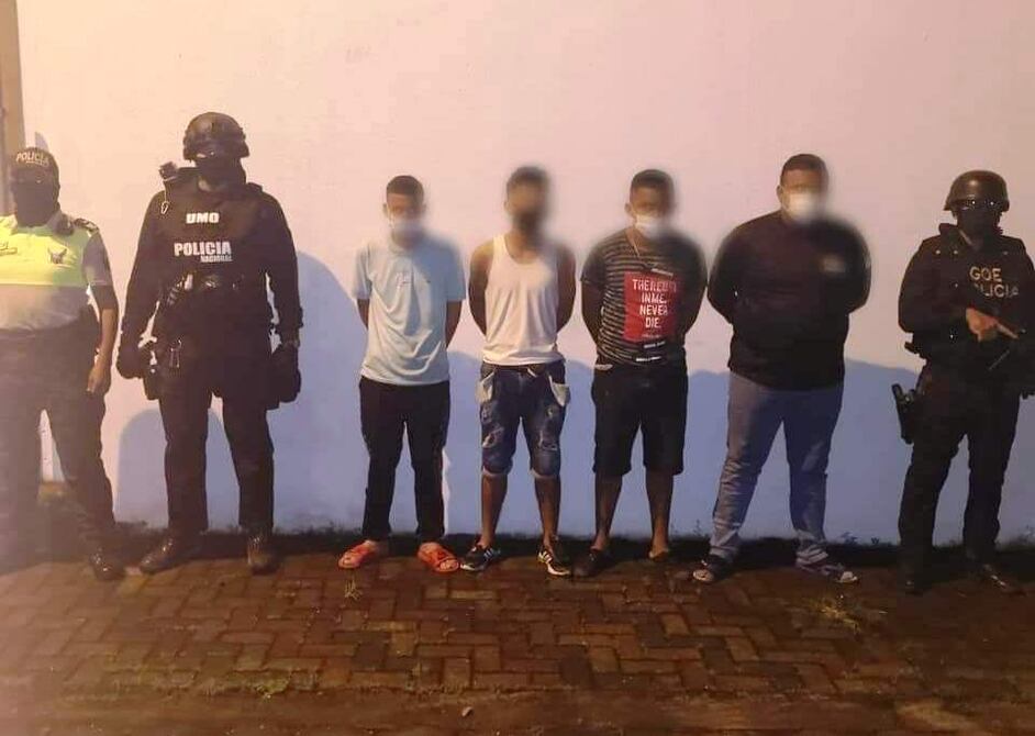 La madrugada de este lunes 15 de marzo, agentes de la Policía Nacional capturaron a cuatro sujetos tras allanamientos a dos viviendas en Quevedo, como parte de las indagaciones por el robo a un centro comercial municipal de la localidad.
