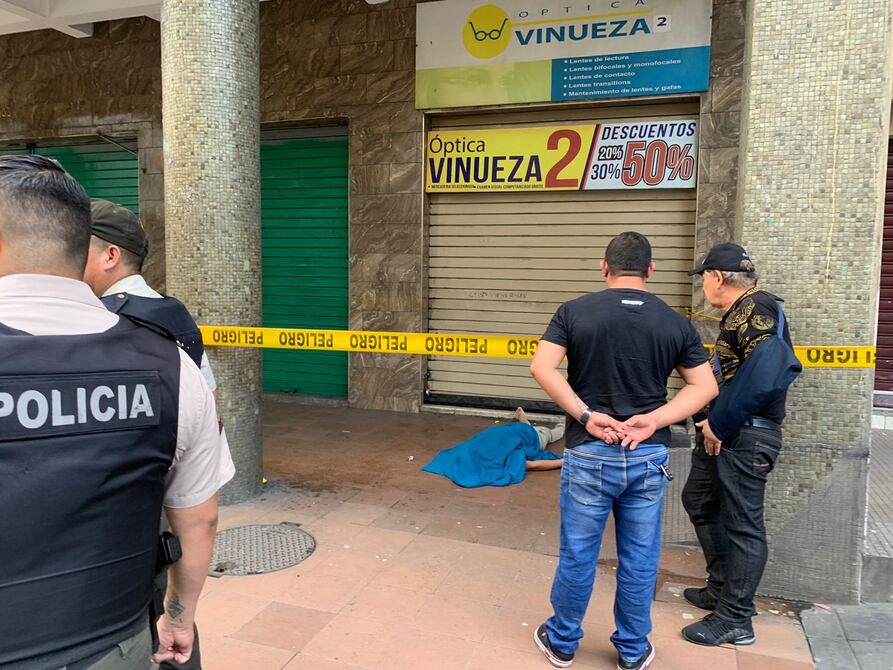 El cuerpo de un hombre fue encontrado la mañana de este viernes 17 de marzo, sin zapatos y sin sus pertenencias, afuera de locales comerciales en las calles Aguirre y 6 de Marzo, en el centro de Guayaquil.