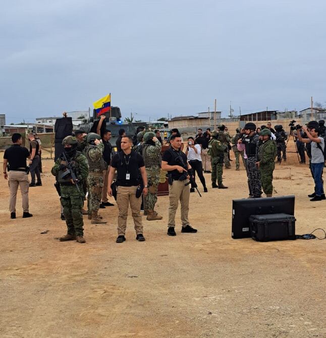 El presidente de la República, Daniel Noboa, cruzó el puente de la Unidad Nacional a bordo de una tanqueta y llegó pasadas las 09:30 de este miércoles, 17 de julio, al sector Fincas Delia, en Durán, para dar un corto discurso por la intervención del cantón al que han llevado 1.200 uniformados de la Policía y Fuerzas Armadas.