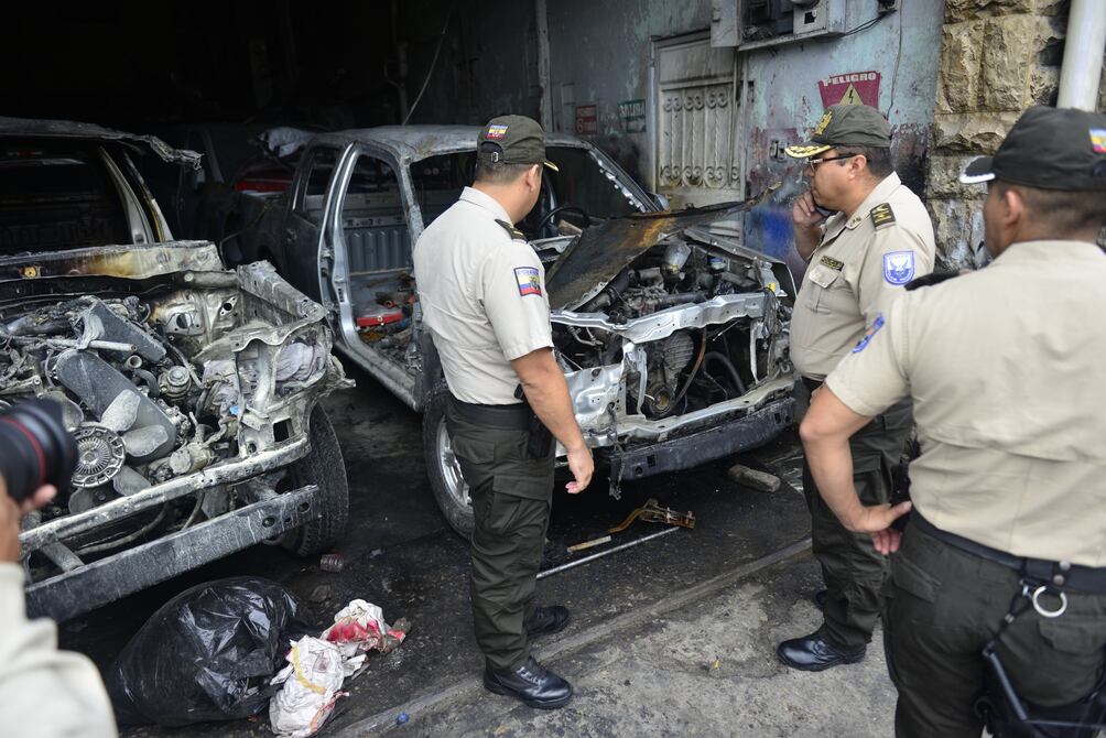 Tres vehículos que estaban en un taller mecánico de la 28 y Chambers, en el suburbio de Guayaquil, quedaron destruidos tras un aparente ataque registrado la noche de este martes.