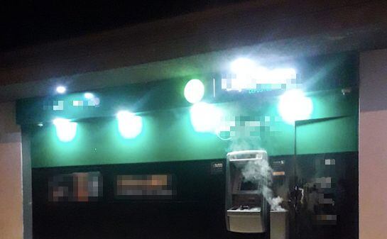 Dos hombres fueron grabados con un celular mientras usaban una soldadora autógena para abrir una puerta ubicada junto al cajero automático de una plazoleta comercial de la vía Salitre-La Aurora.