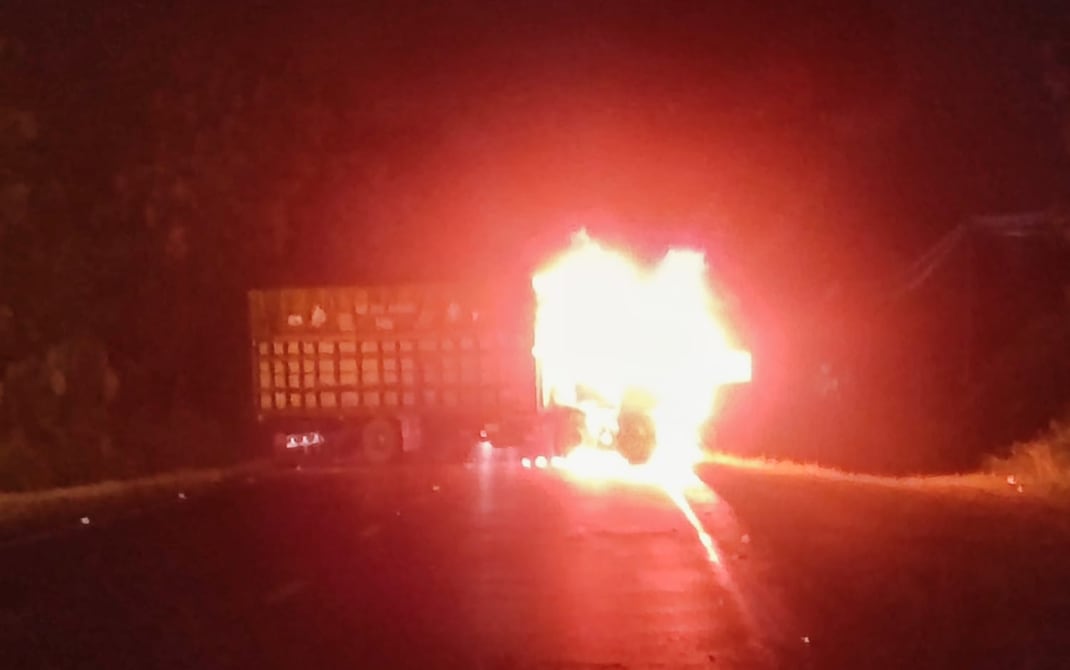 Delincuentes incendiaron un camión y lanzaron explosivos para poder huir, en El Guabo