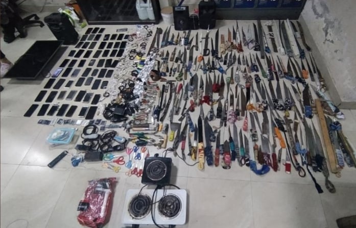 Armas blancas, alcaloides, dispositivos móviles, dinero en efectivo y otros objetos fueron decomisados en la cárcel de El Inca, en Quito.