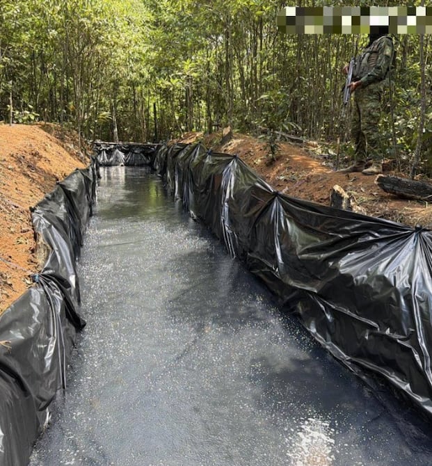 Durante la intervención se identificó una piscina con combustible almacenado, una piscina vacía, un acople clandestino, 3.000 metros de manguera, 10 metros de manguera de alta presión y una válvula de alta presión.
