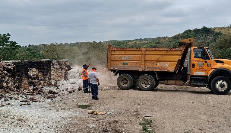 Personal municipal acudió al km 34 de la vía a la costa para participar en la demolición de un camal clandestino.