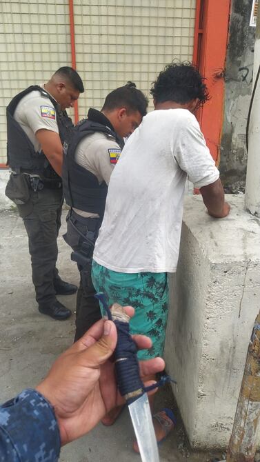 Dos jóvenes fueron detenidos la mañana de este martes luego de que intentaban fugar tras haber robado a los pasajeros de la línea 121 en la avenida Juan Tanca Marengo, a la altura de la Martha de Roldós.