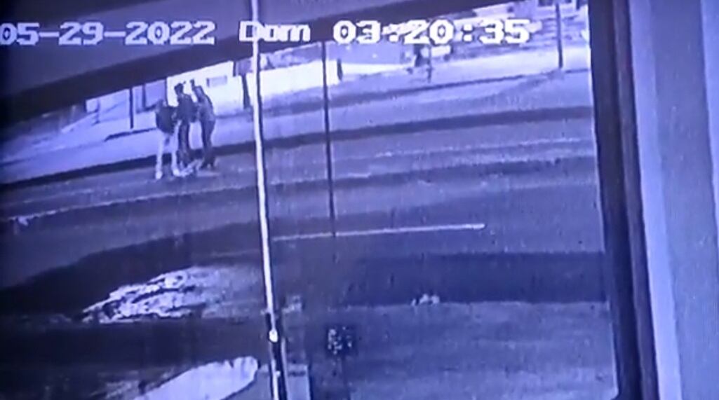 Un joven camina tranquilo por la calle y dos hombres salen de una esquina y se acercan presurosos hacia él.