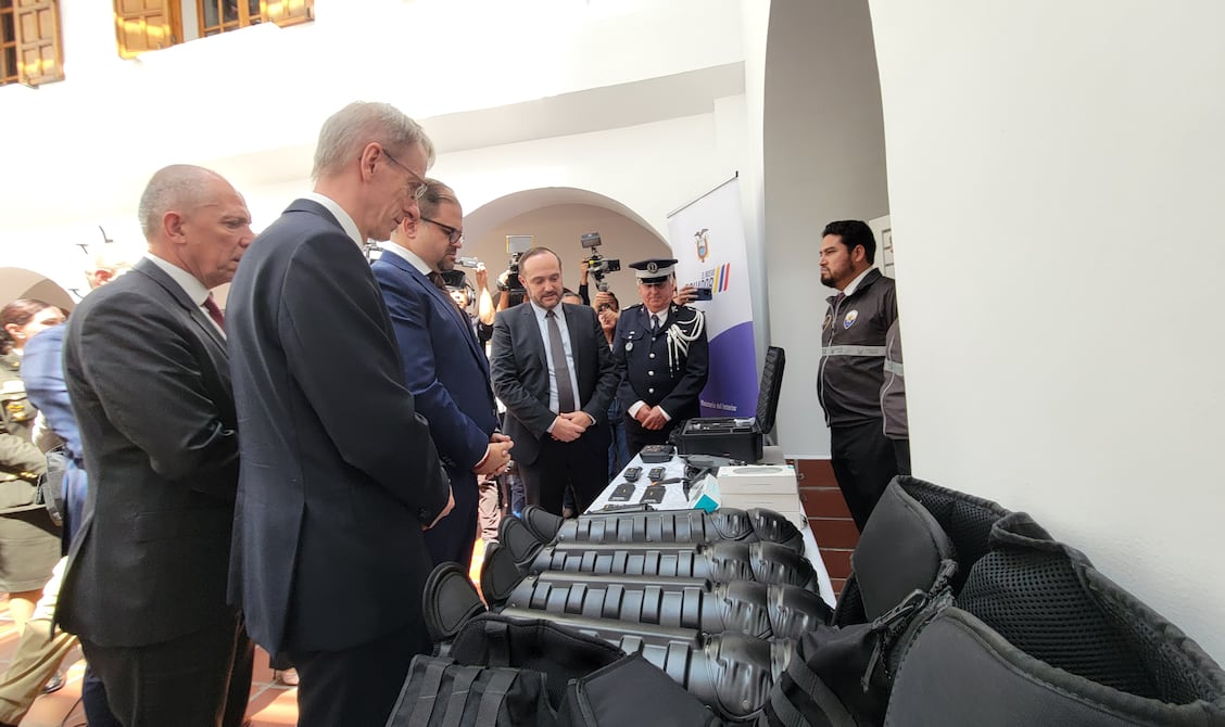 Este lunes hubo una donación de equipamiento de seguridad de Francia para la Policía ecuatoriana.