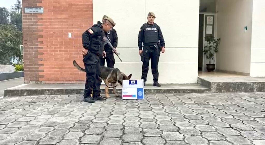 Con la ayuda del can Karsc, la Policía Nacional evitó que un cartón con dosis de droga fuera enviado desde Quito a España.