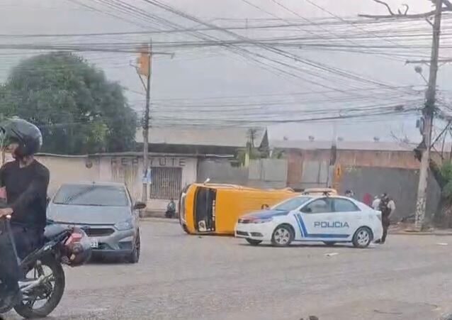 Un expreso escolar se siniestró en el sector del parque California, en el norte de Guayaquil, diagonal al Registro Civil, la mañana de este martes, 13 de mayo.