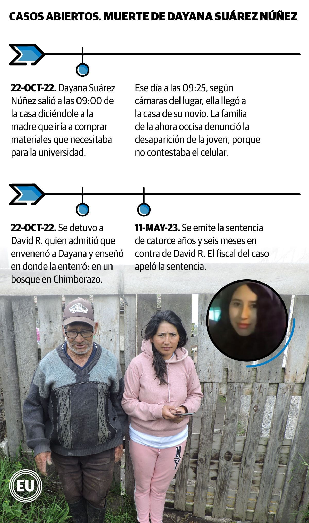 Juan Núñez y Rosa Núñez, abuelo materno y tía de Dayana, también muestran inconformidad con la sentencia de la pena privativa de libertad para David R. Ellos consideran que se le debía imponer lo que señala el artículo 141 del Código Orgánico Integral Penal (COIP) para el caso de femicidio: entre 22 y 26 años.