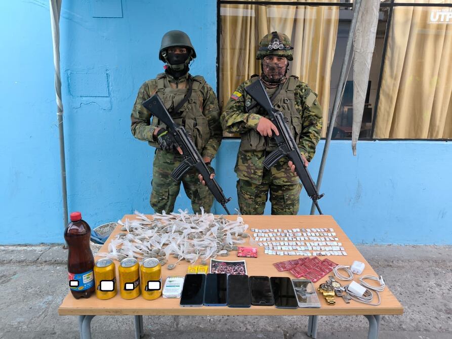 En la cárcel de Ambato se encontraron también celulares, 269 paquetes de sustancias sujetas a fiscalización, 2 dispositivos de almacenamiento de información.