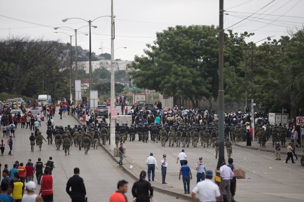 Al menos 400 policías, 100 militares y 200 metropolitanos llegaron al Mercado de Transferencia de Víveres de Montebello, en el norte de Guayaquil, para desalojar a los cientos de manifestantes que desde la madrugada de este martes, 21 de junio, habían impedido el ingreso de los camiones, compradores e incluso de quienes laboran en este mercado, el centro de abasto más grande de Guayaquil.