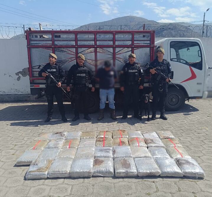 Personal de la Policía Nacional realizó un registro de control a un camión que transitaba por el sector de Ambuquí, provincia de Imbabura. En el piso del cajón de madera se escondían varios bloques y fundas que contenían droga.