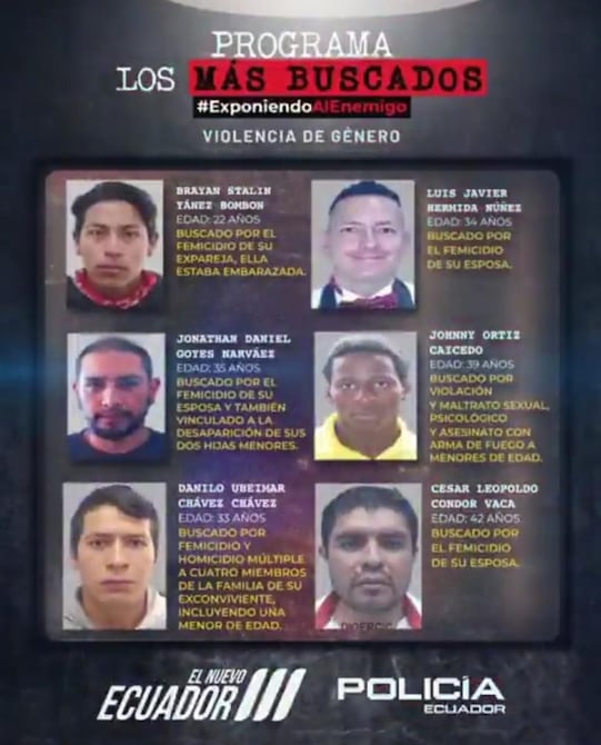 El primero de ellos es Brayan Stalin Yánez Bombón, de 22 años. Él es buscado por el femicidio de su expareja, quien estaba embarazada.