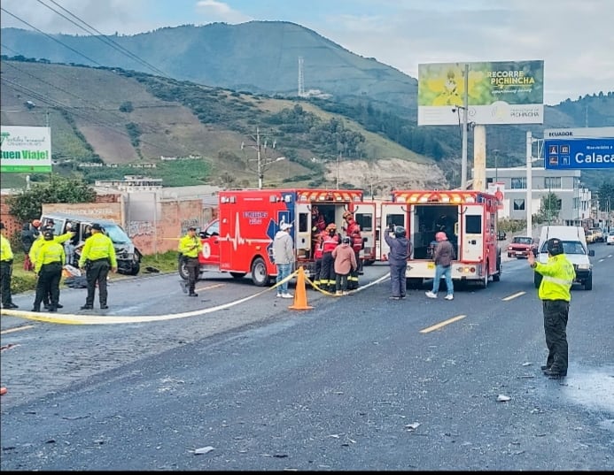 Según el Cuerpo de Bomberos de Quito también hubo cuatro heridos tras la colisión de dos vehículos. La vía fue habilitada antes de las 11:00.