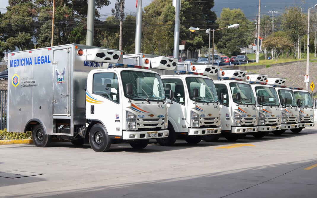 Nueve vehículos isotérmicos, 35 maletines de luces forenses, 55 torres de iluminación y 24 microscopios portátiles fueron entregados la mañana de este lunes 30 de enero en el edificio de Medicina Legal de la Policía Nacional, en el norte de Quito.