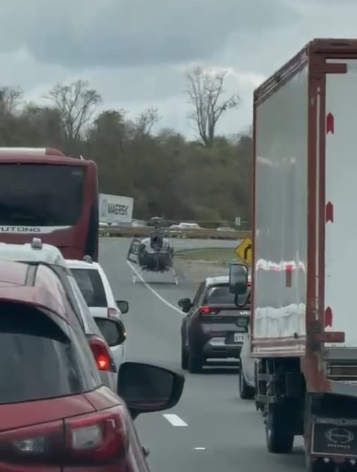 La aeronave aterrizó en la vía a la costa, a la altura del km 30.