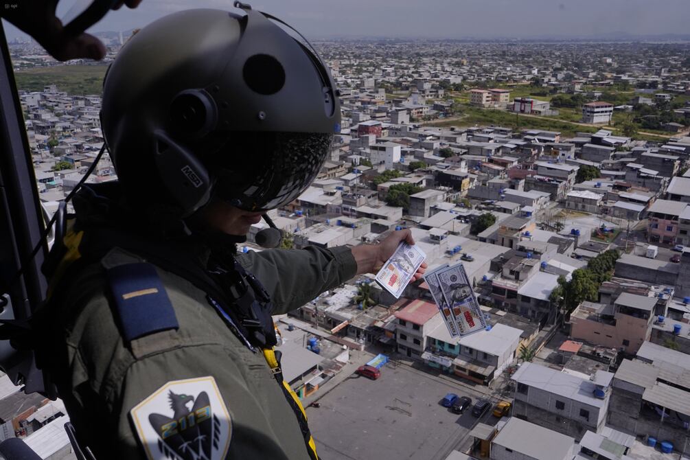 Este viernes, 13 de junio, en Durán se lanzaron billetes falsos para motivar a la ciudadanía a aportar con un plan impulsado por el Bloque de Seguridad.