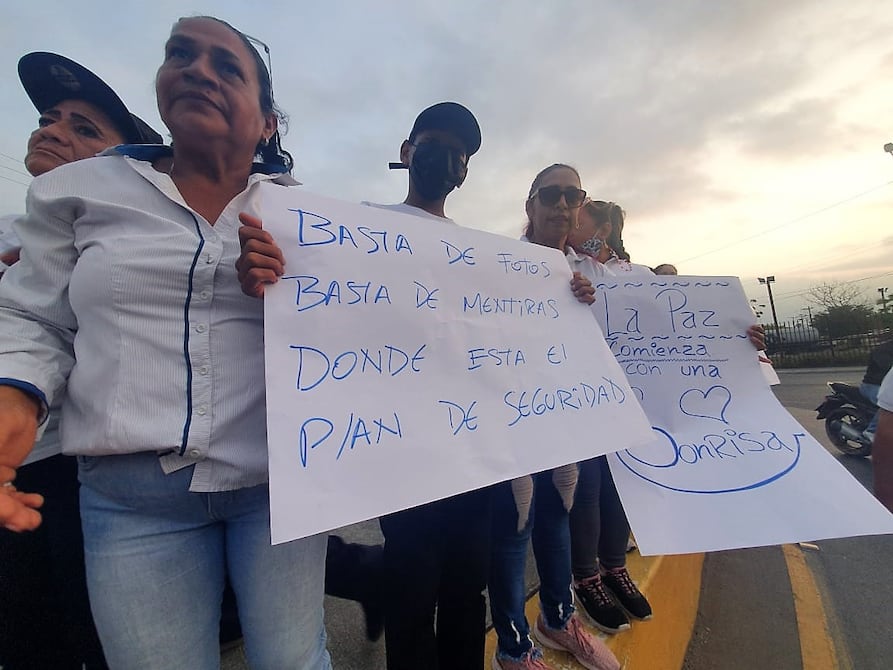 Con carteles, globos y banderas, unas 300 personas participaron en una marcha y plantón para pedir el cese de actos delictivos y violencia en el cantón Durán.