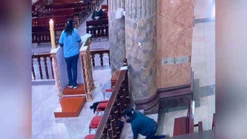 En redes sociales, la iglesia San Juan Bautista difundió un clip audiovisual sobre el robo de una cartera en el atrio del centro religioso mientras una señora rezaba.