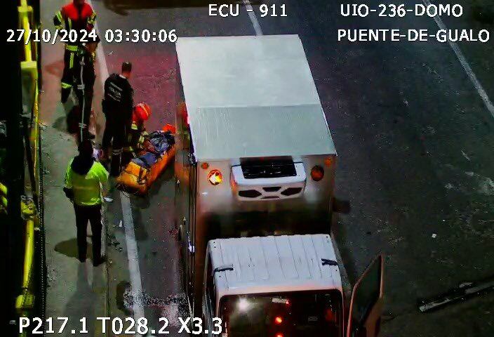 Este domingo, 27 de octubre, aproximadamente a las 00:11, el Cuerpo de Bomberos de Quito (CBQ) fue alertado sobre un siniestro vehicular en la avenida Simón Bolívar, sector puente de Gualo, ubicado en el norte de la capital.