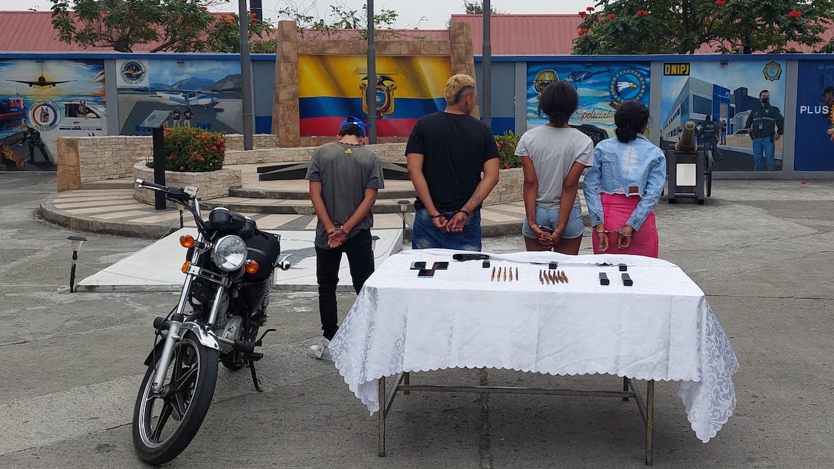 Dos mayores de edad y dos adolescentes fueron encontrados con armas, alimentadoras y municiones en un hotel ubicado en el distrito Florida, en Guayaquil.