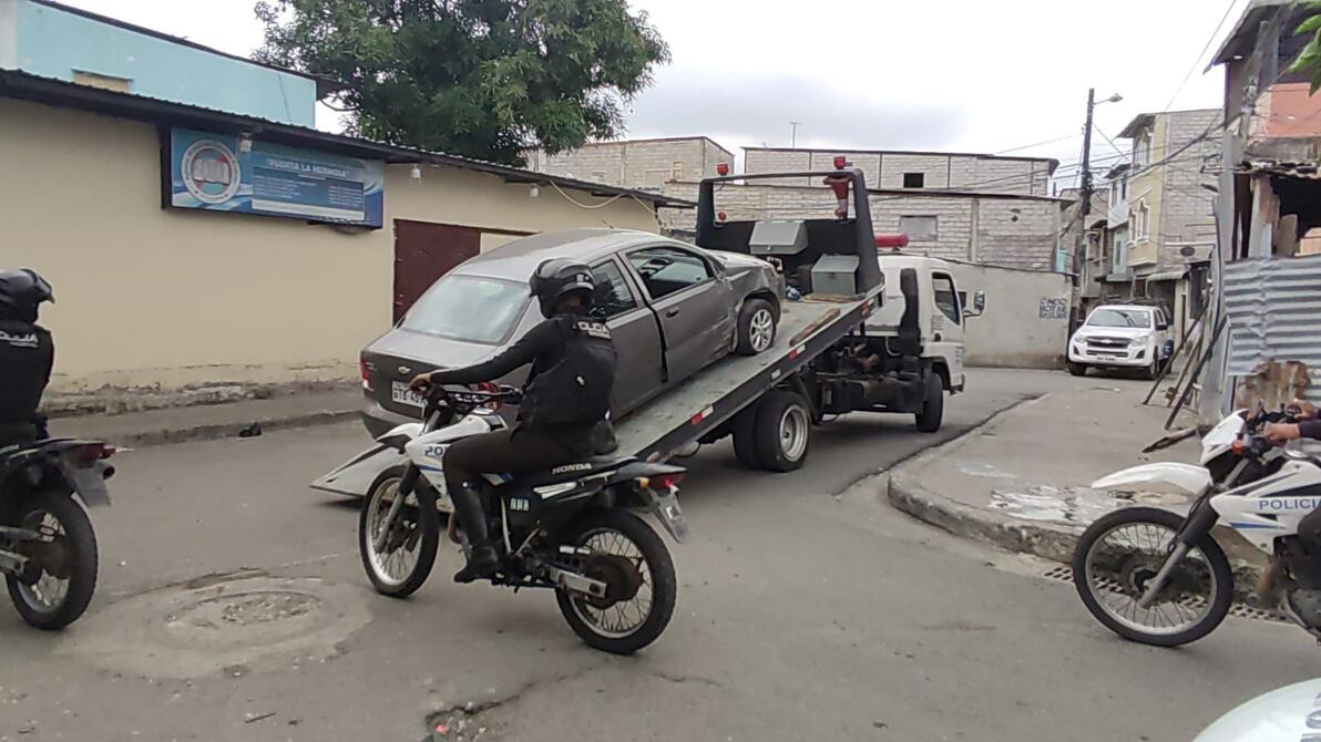 Uno de los carros de los sospechosos fue abandonado en el lugar y la Policía lo trasladó a la PJ.
