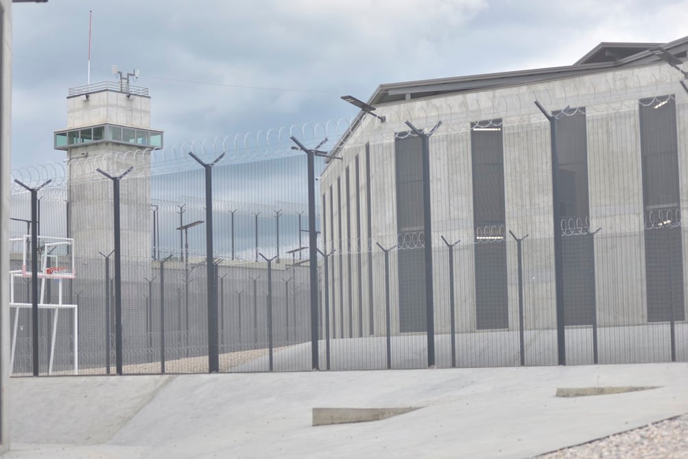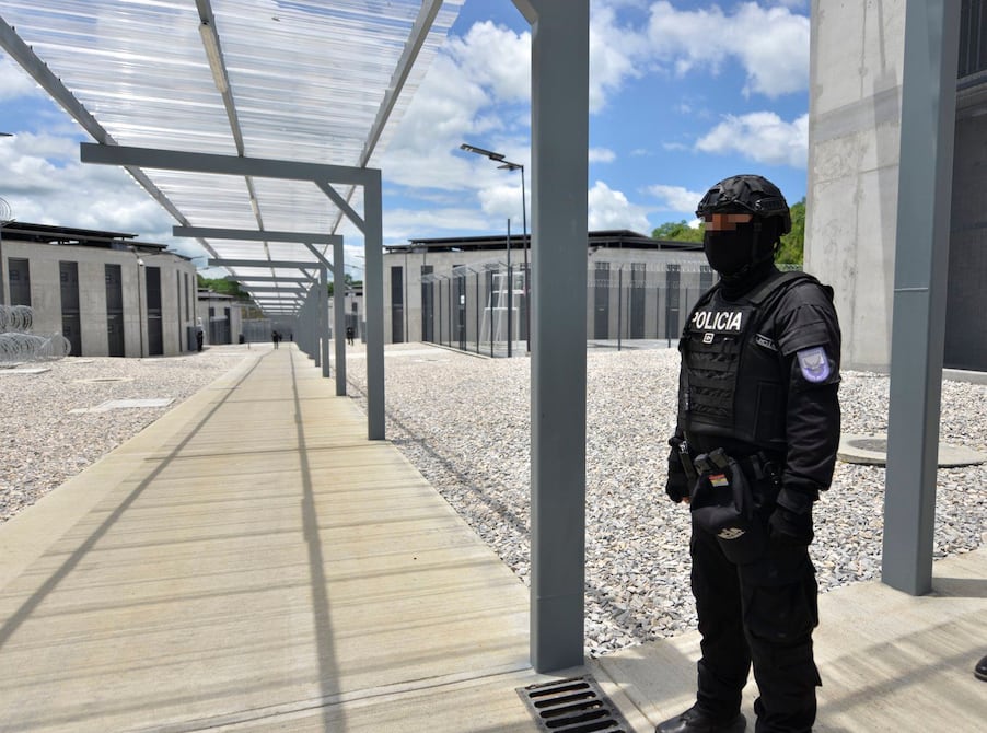 Unos metros más adelante asoma la gigante estructura de la prisión, cuyo perímetro está limitado en la parte frontal por un muro de gaviones y una garita con puerta metálica. Allí, así como en decenas de puntos, se replican las cámaras de distinta tecnología.