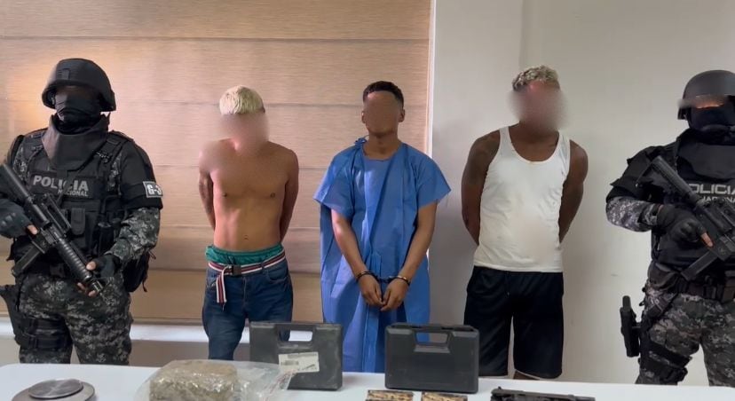 Víctor Manuel O., alias Lucky; Richard Josué C., alias Richard; y David Jhonny R. fueron detenidos la tarde de este lunes, 12 de febrero, en varios allanamientos en Durán.
