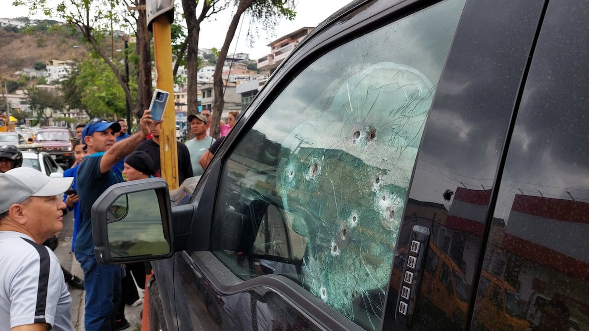 La camioneta Ford de color negro tenía aproximadamente 15 impactos de proyectil en la ventana del conductor.