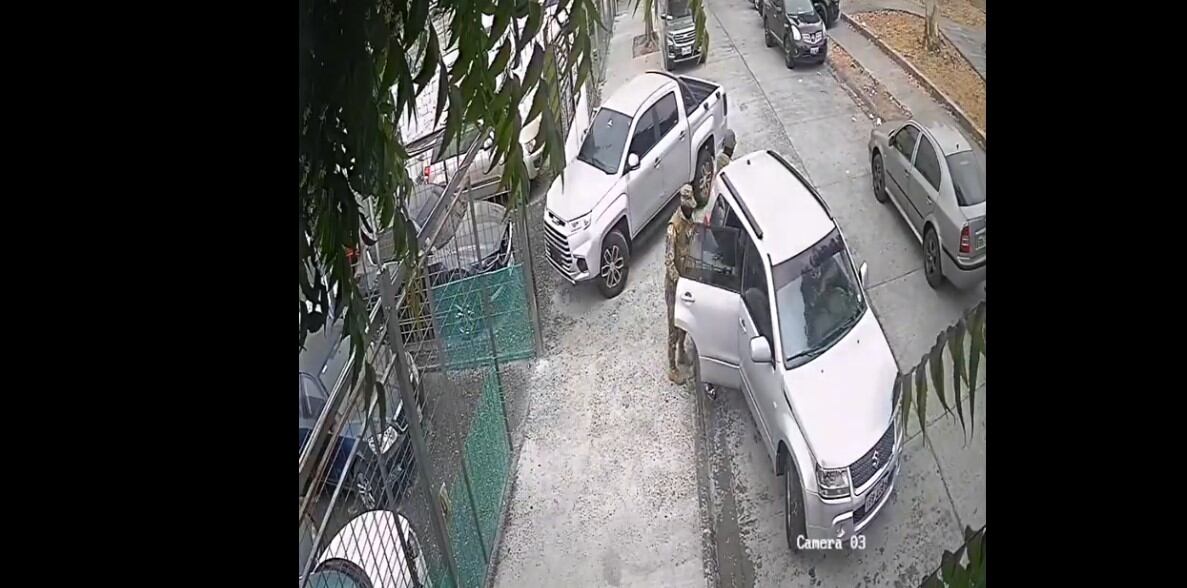 Un grupo de hombres que vestían uniformes similares a los militares llegó en un carro todoterreno a los exteriores de un patio de venta de vehículos.