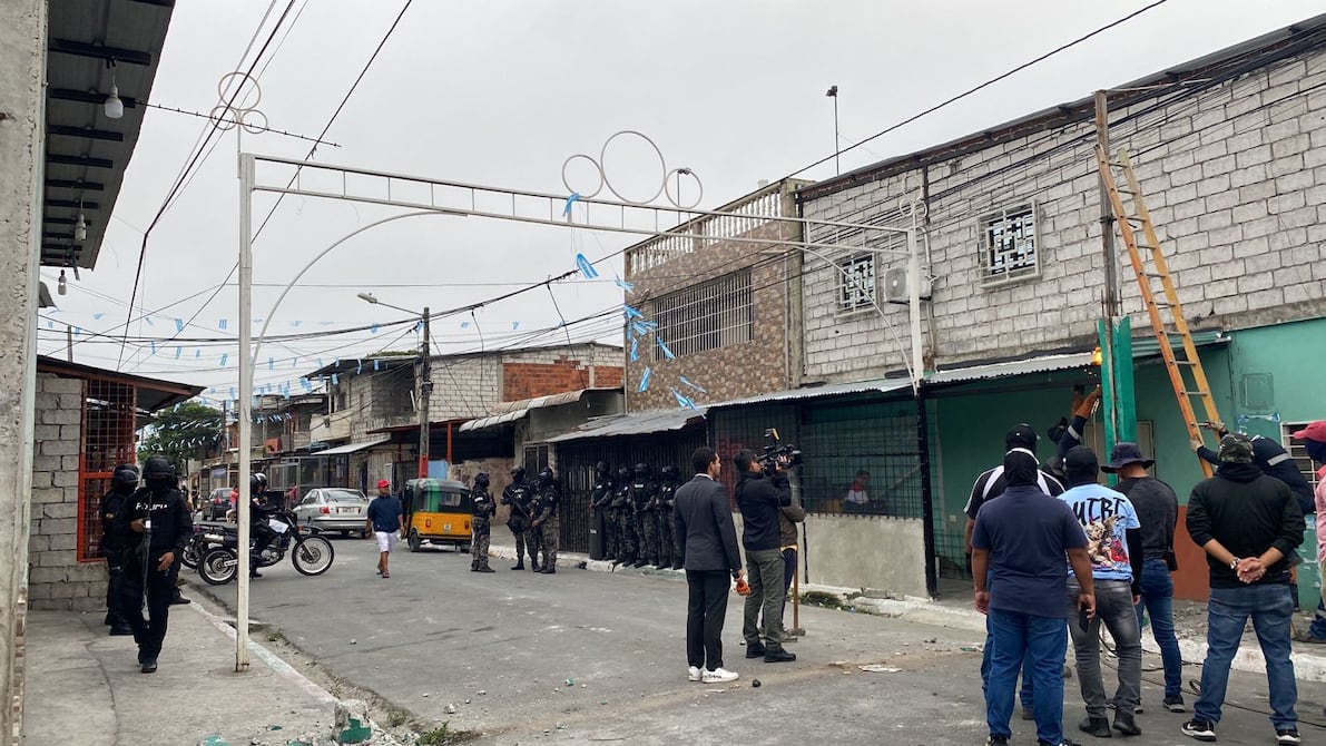 Personal de la Policía Nacional realiza la intervención en varias viviendas del sector de Cristo del Consuelo, en el suroeste de Guayaquil, la mañana de este lunes, 22 de julio.