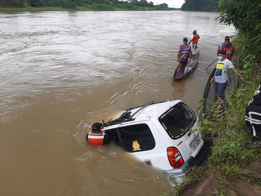 La madrugada de este miércoles una familia que se movilizaba en un auto cayó al río tras perder pista en el anillo vial de Quevedo, en sentido hacia el cantón Buena Fe.