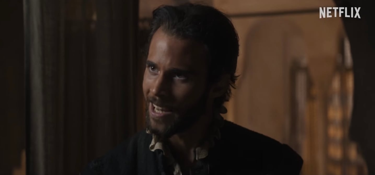 El cineasta toma ese núcleo y opera el milagro del cine: con la pátina ocre propia de las películas históricas abre dos posibilidades: la de Cervantes, prisionero en Argel, esperando su rescate traducido en doblones de oro, y la del personaje del relato de cautiverio, que su imaginación está concibiendo y que cuenta oralmente a sus compañeros, para distraerlos de los rigores de la prisión. En la primera, asistimos a una interpretación, por cierto, esgrimida por algunos biógrafos, de que el joven prisionero atrajo la atención del bajá Hasán, como contador de historias, tanto que, a pesar de haber intentado varias escapatorias, le perdonó la vida. El director ha testimoniado que las razones son de su libre ficción.