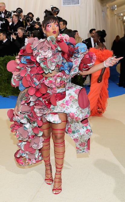 La alfombra roja de la Gala del Met, en Nueva York, Estados Unidos, fue cubierta por la extravagancia en los diseños de los atuendos que lucieron las celebridades, quienes rindieron honor a la vanguardista diseñadora japonesa Rei Kawakubo, marcando el inicio a la exposición de moda anual del Instituto del Vestido del Museo Metropolitano de Arte.